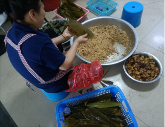 活動現場準備了糯米、粽葉、鮮肉、紅豆等材料,行政后勤科職工十分享受包粽子的過程,數量大,任務緊的情況下還能聽到活動現場歡聲笑語不斷,仿佛包的不是粽子,而是快樂與愛心。通過此次活動,既傳承了傳統(tǒng)技藝,又切身感受到了濃濃的節(jié)日氣氛,很有意義。